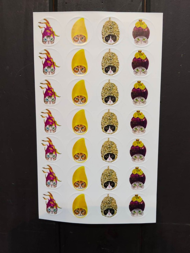 南国フルーツの被り物が可愛い♡ 猫イラストシール