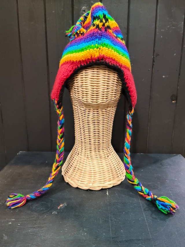 ネパールよりウール100%のニット帽が入荷いたしました! ヒマラヤの麓の村人たちが手編みで作るあったかニットアイテムです(^^) ひとつひとつ手編みのため、形や色が少しずつ違うのも味がありますよ! 写真5枚目にあるように内側部分はフリース加工になっているので、 よりあたたかく、チクチクする事もありません♪ これから寒くなる時期にぴったりのアイテムです♡ 素材 表地:ウール100% 裏地:ポリエステル100% サイズ 長さ:29cm(頭頂部、耳当て下部分の装飾含まず) 横:26cm(1番長い部分で測っています) ※素人寸法のため、多少の誤差はご了承お願いいたします。 ご覧いただきありがとうございます。