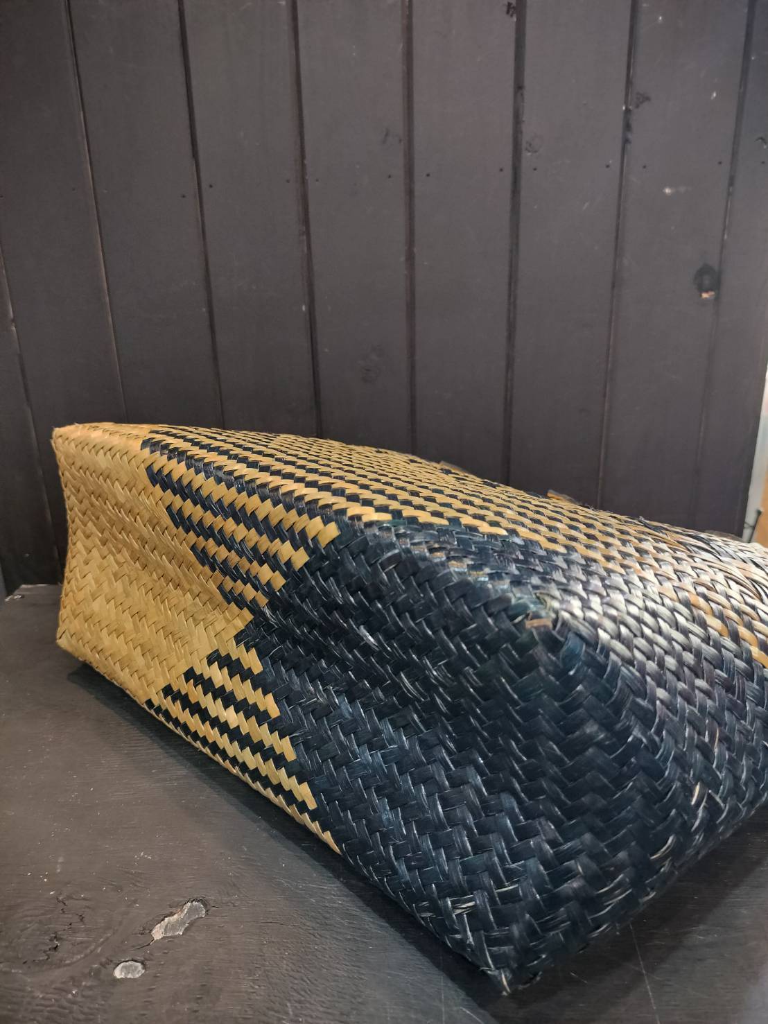 タイ製 荷物が多くても安心!かごトートバッグ 深緑色