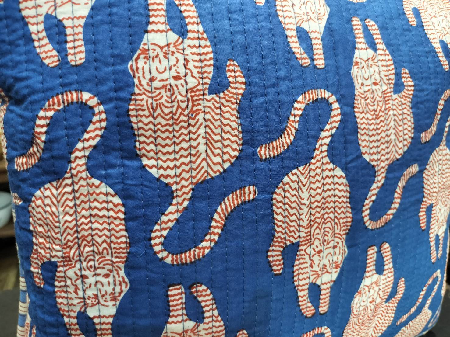 インド ブロックプリント 猫模様 キルティングクッションカバー①