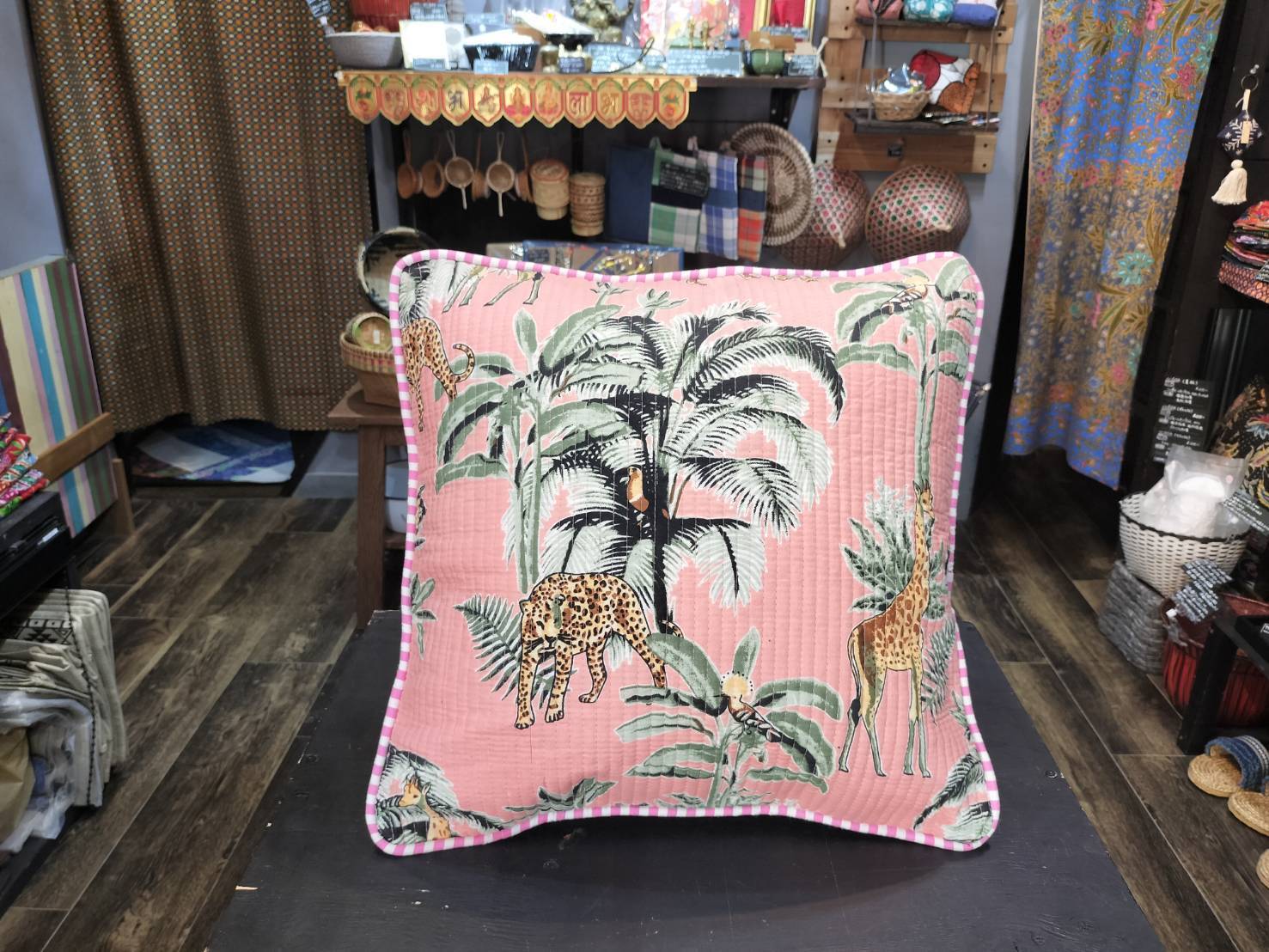 インド ブロックプリント ジャングル柄 キルティングクッションカバー③