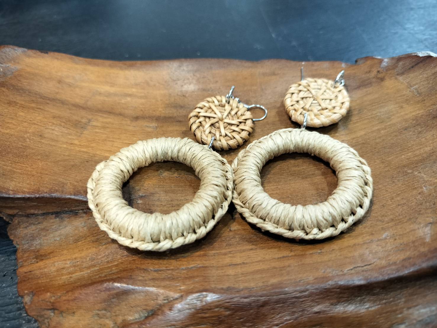 ナチュラルなラタン素材のフープピアスが入荷いたしました♪