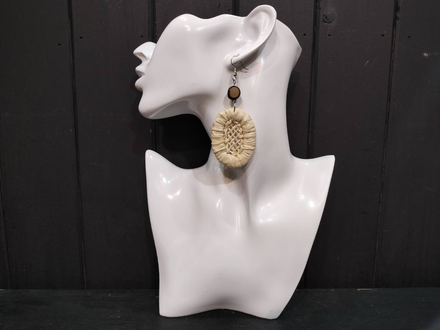 - デザイン: ラタン製のオーバル型ピアス
