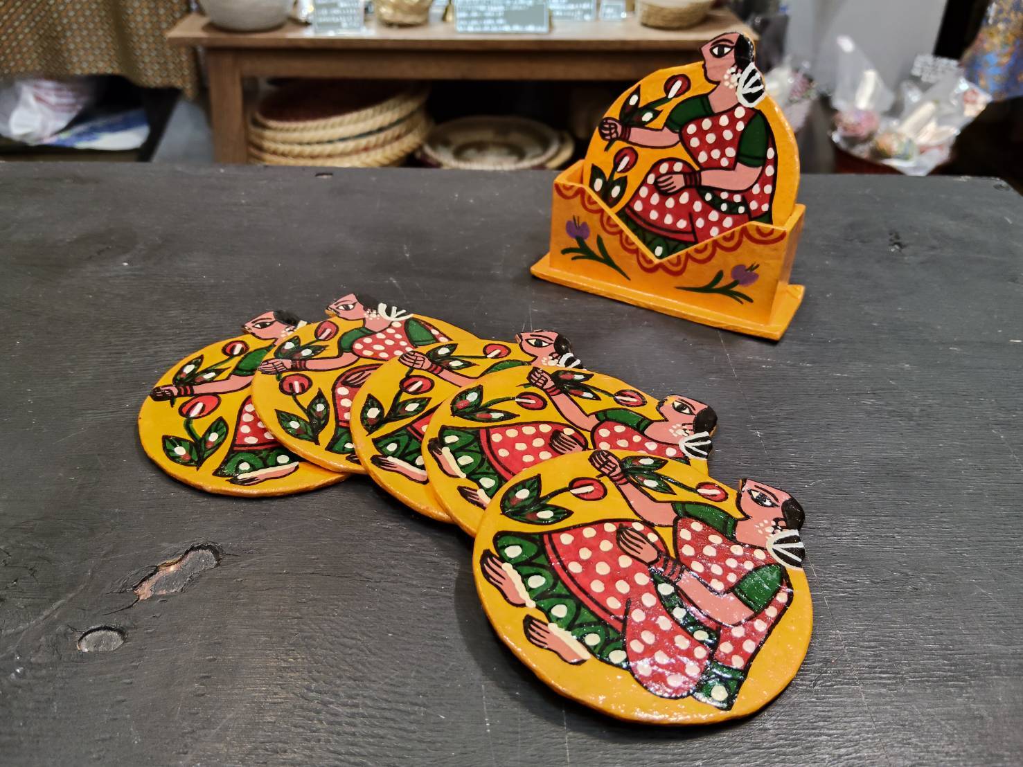 ネパールより直接買い付け!ポップな絵柄が可愛い♡コースター6枚セット①