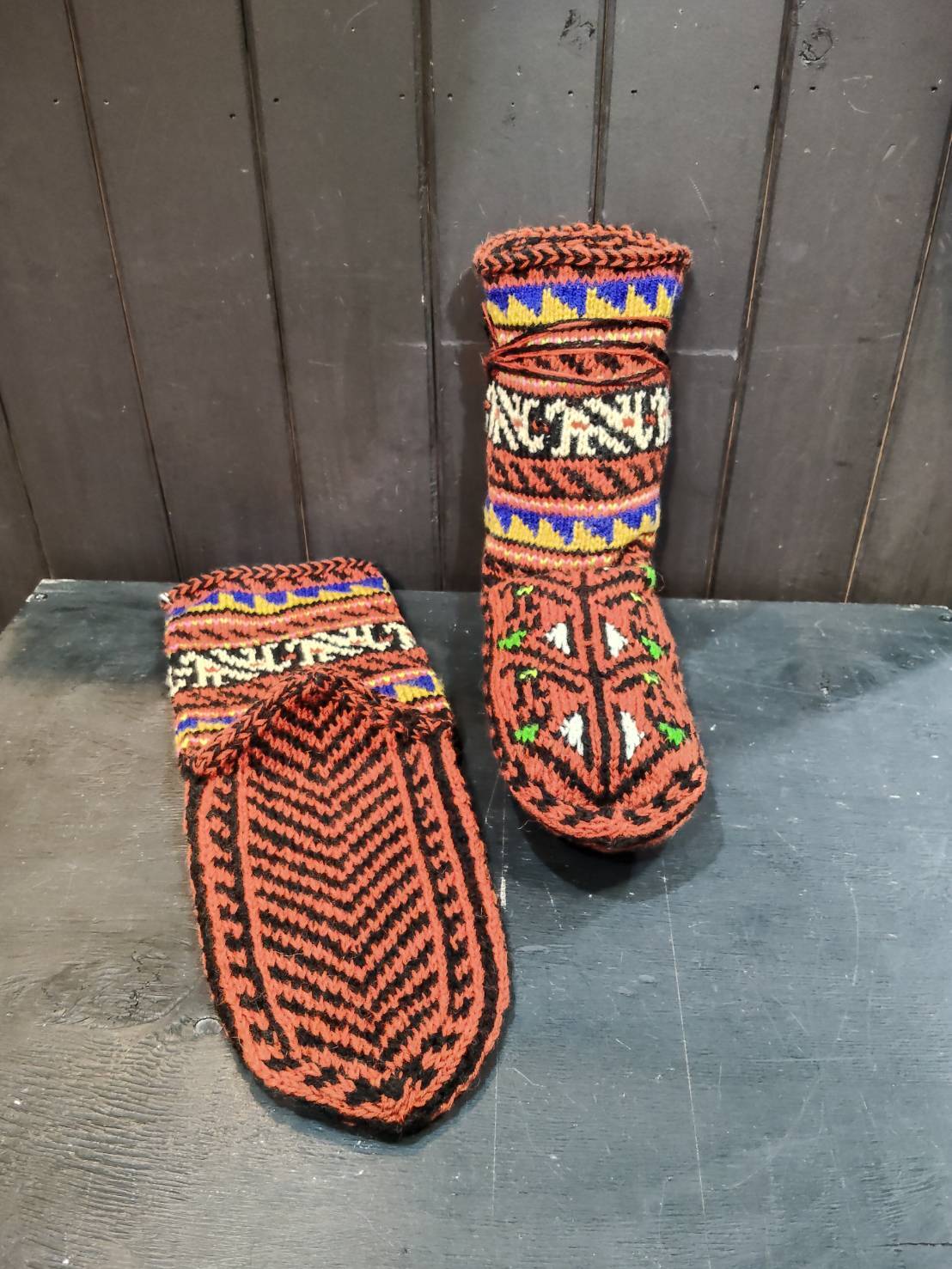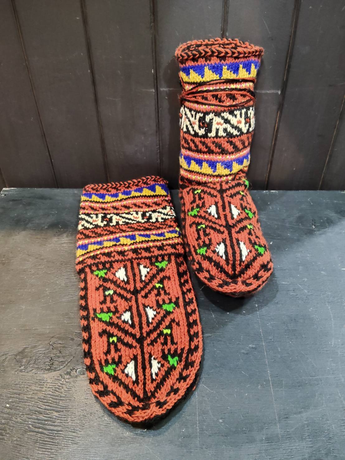 イラン製 手編みルームソックス(ロング)アクリル マースレー村【①-1】