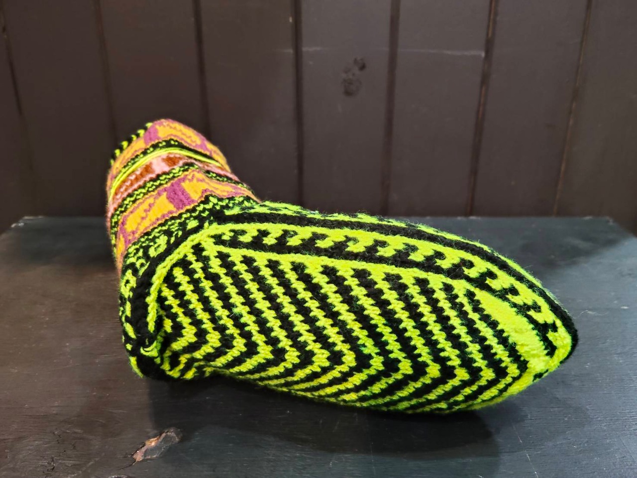 そこで暮らすおばあちゃんたちが手編みでつくった伝統的な靴下は、カラフルでとってもあたたかみがあります。色や柄は作り手によって多種多様。2足と同じデザインが存在しません。