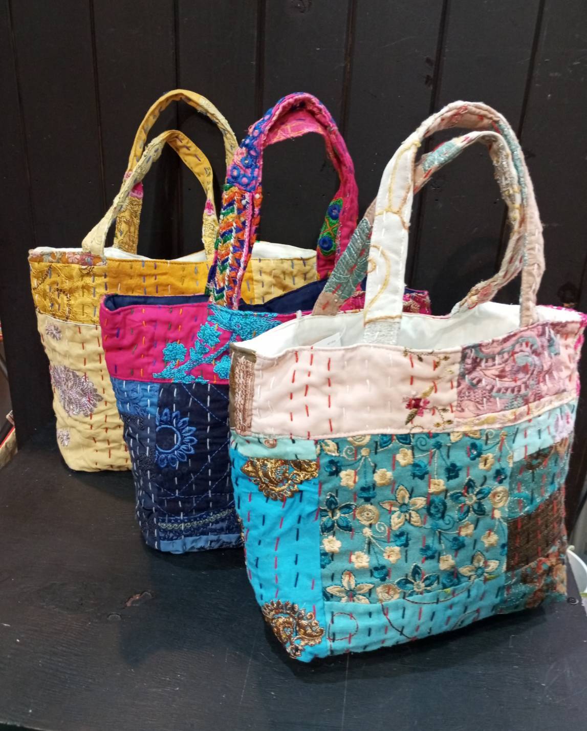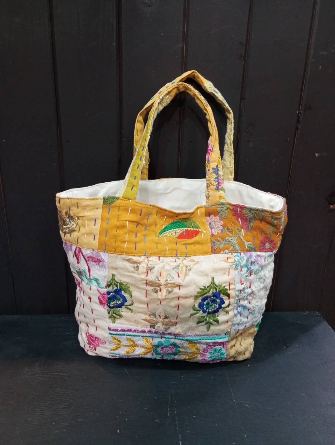インドに伝わる、刺し子を組み合わせてバックにしました。