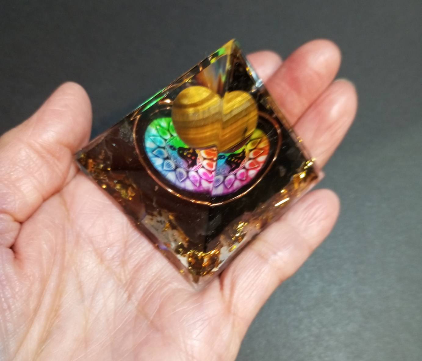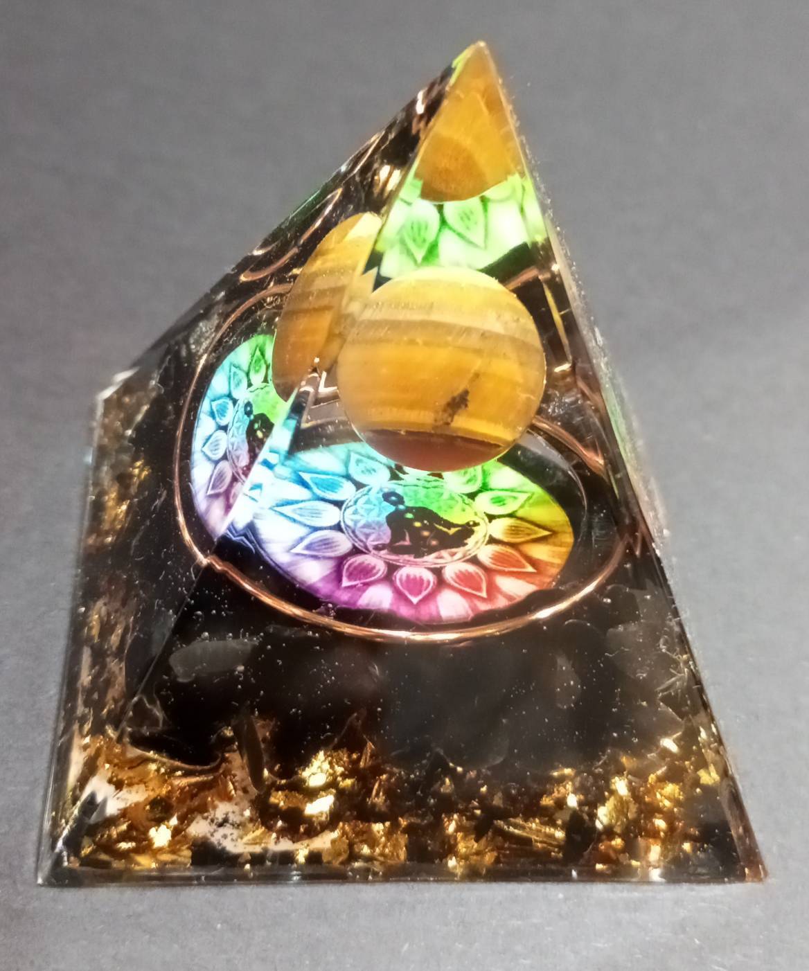 オルゴナイト クリスタルピラミッド タイガーアイ×黒曜石