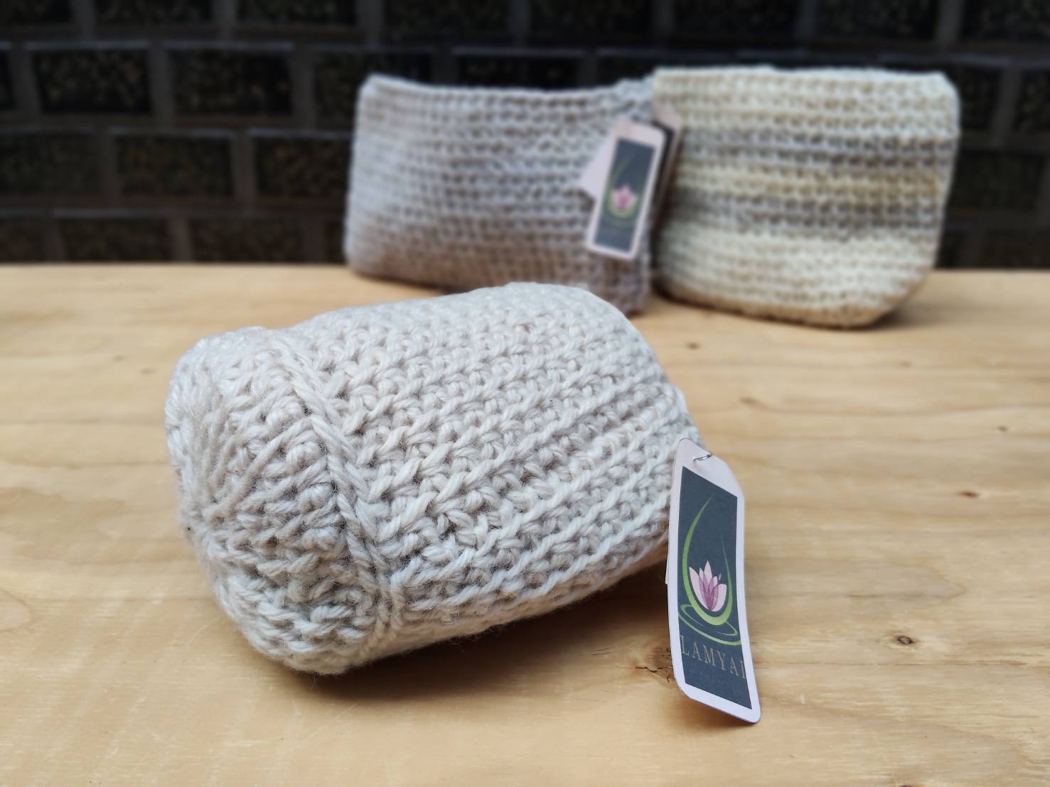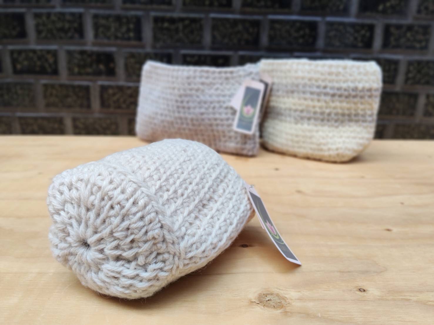 手作りのニット小物入れが入荷いたしました♪
