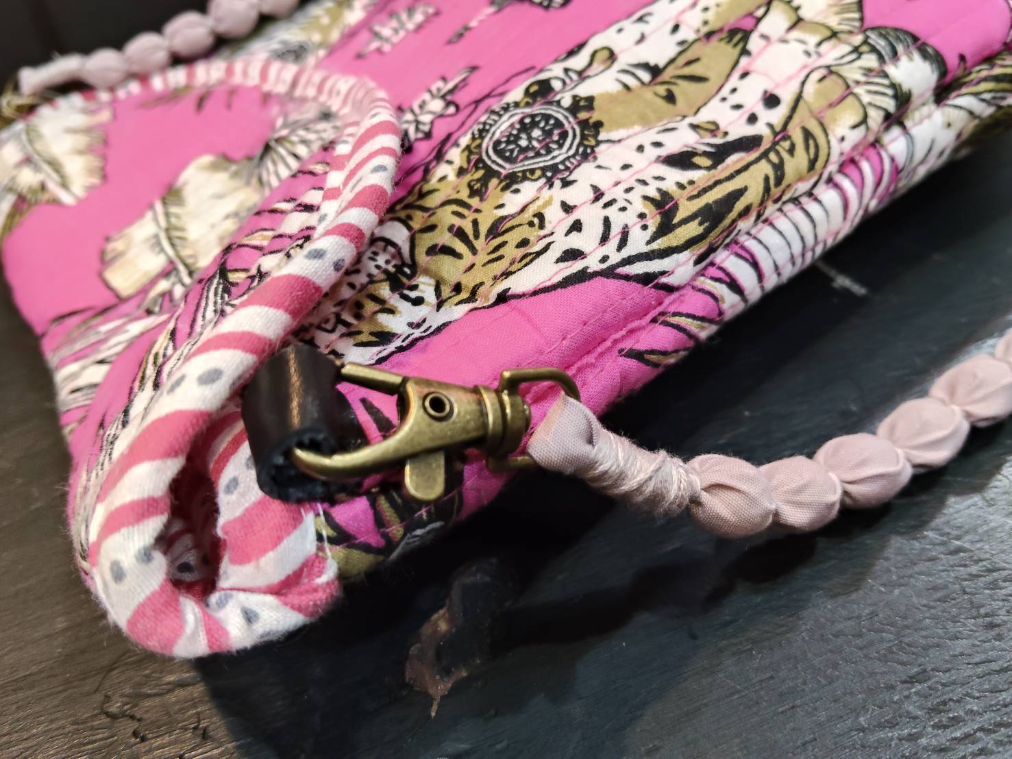 A4サイズがすっぽり入る!インドブロックプリント生地 ショルダー付きポーチ⑤