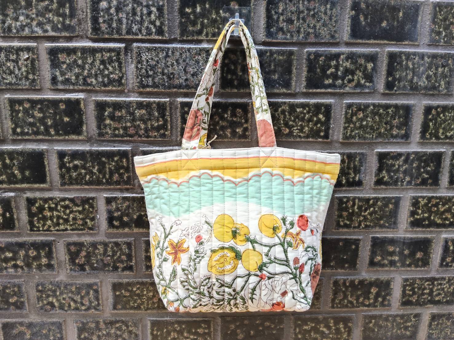 - デザイン: 花柄のキルティングトートバッグ