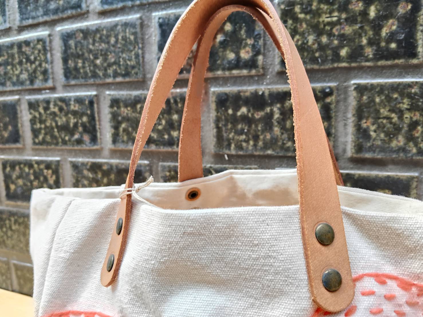 タイ在住アーティストオリジナル 恐竜刺し子のキャンバストートバッグ①