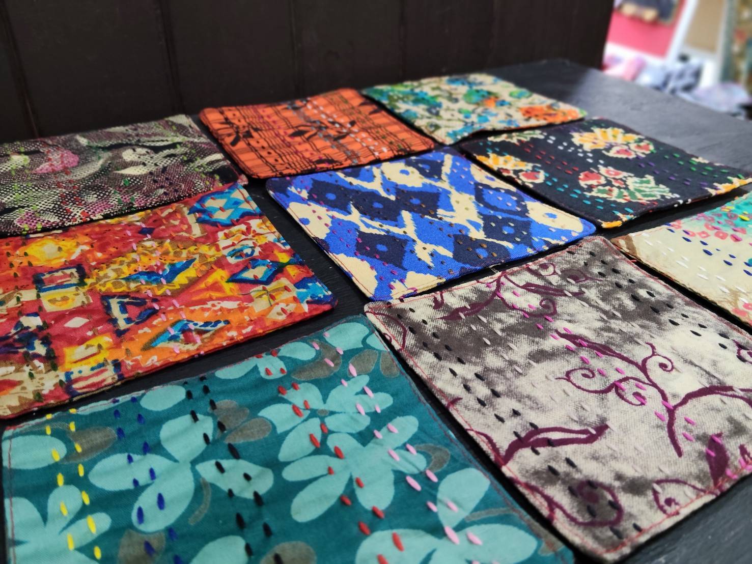 色とりどりの刺し子布を使用したコースターが入荷いたしました♪