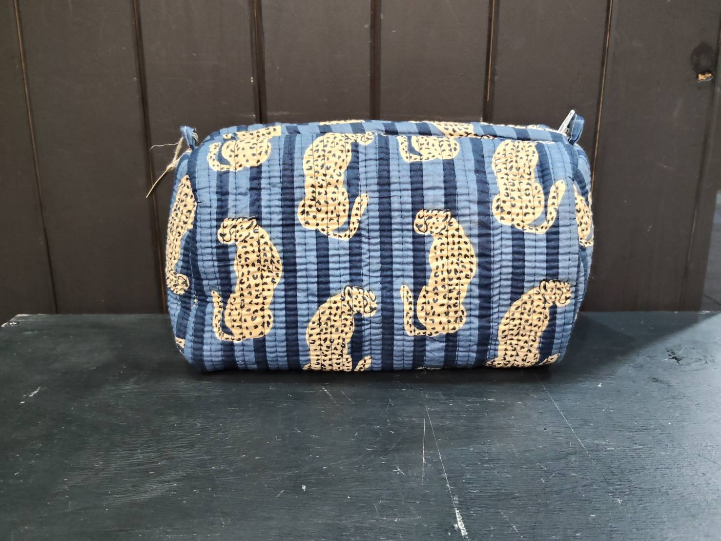 ☆人気商品入荷☆タイ製 ヒョウ柄ネイビー布製ポーチ【⑥】