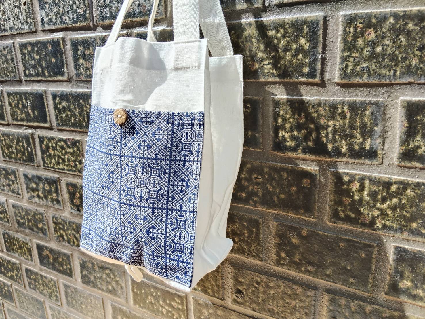 - デザイン: ボタン付きのトートバッグ