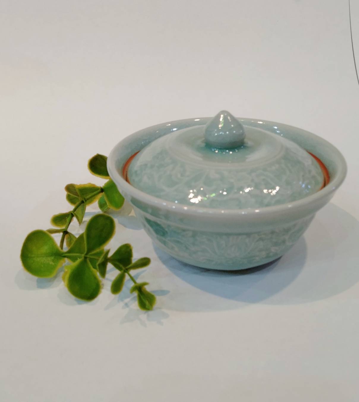 タイ チェンマイ製 セラドン焼き 蓋付き器