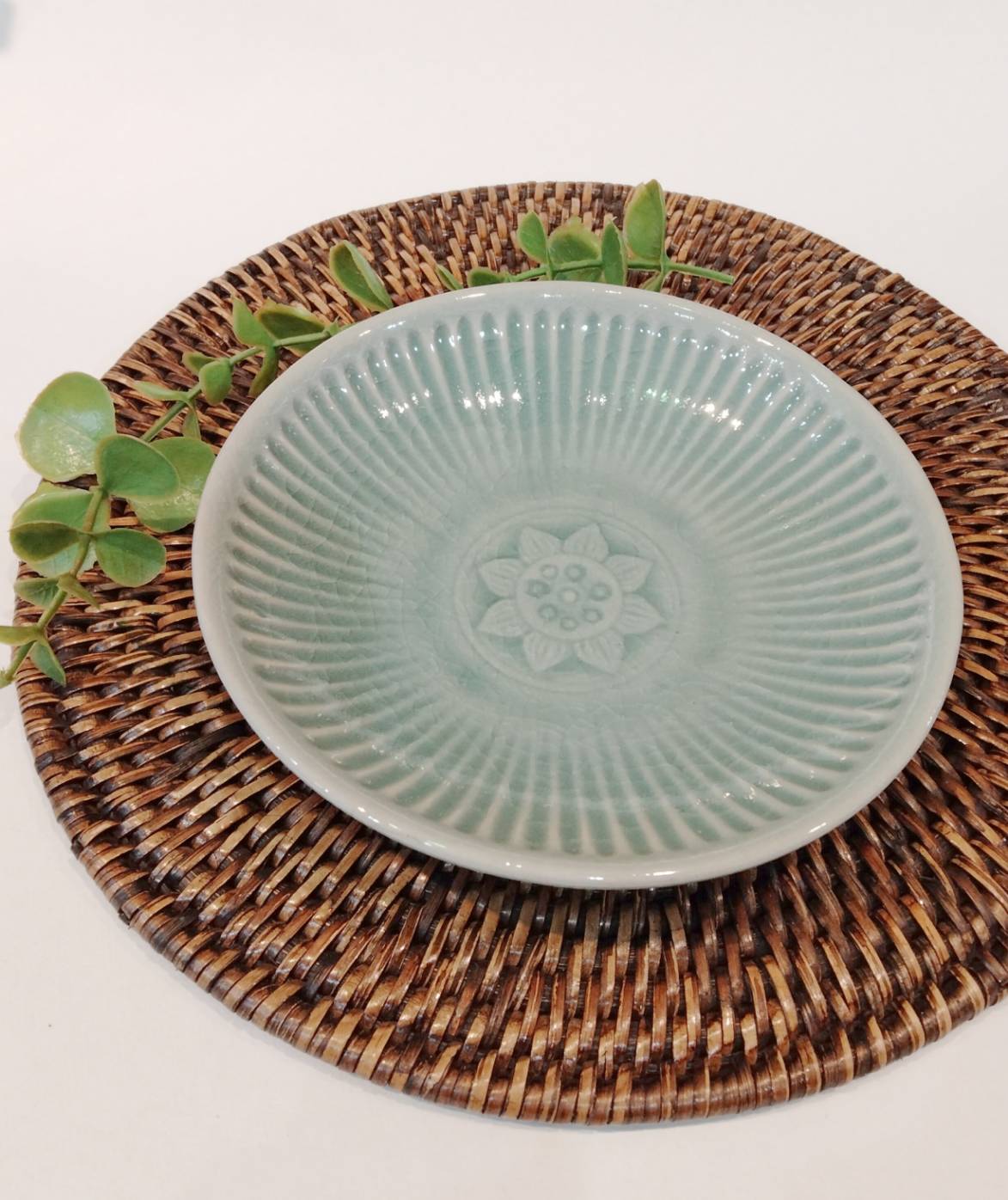 タイ チェンマイ製 セラドン焼き 小皿【蓮柄】