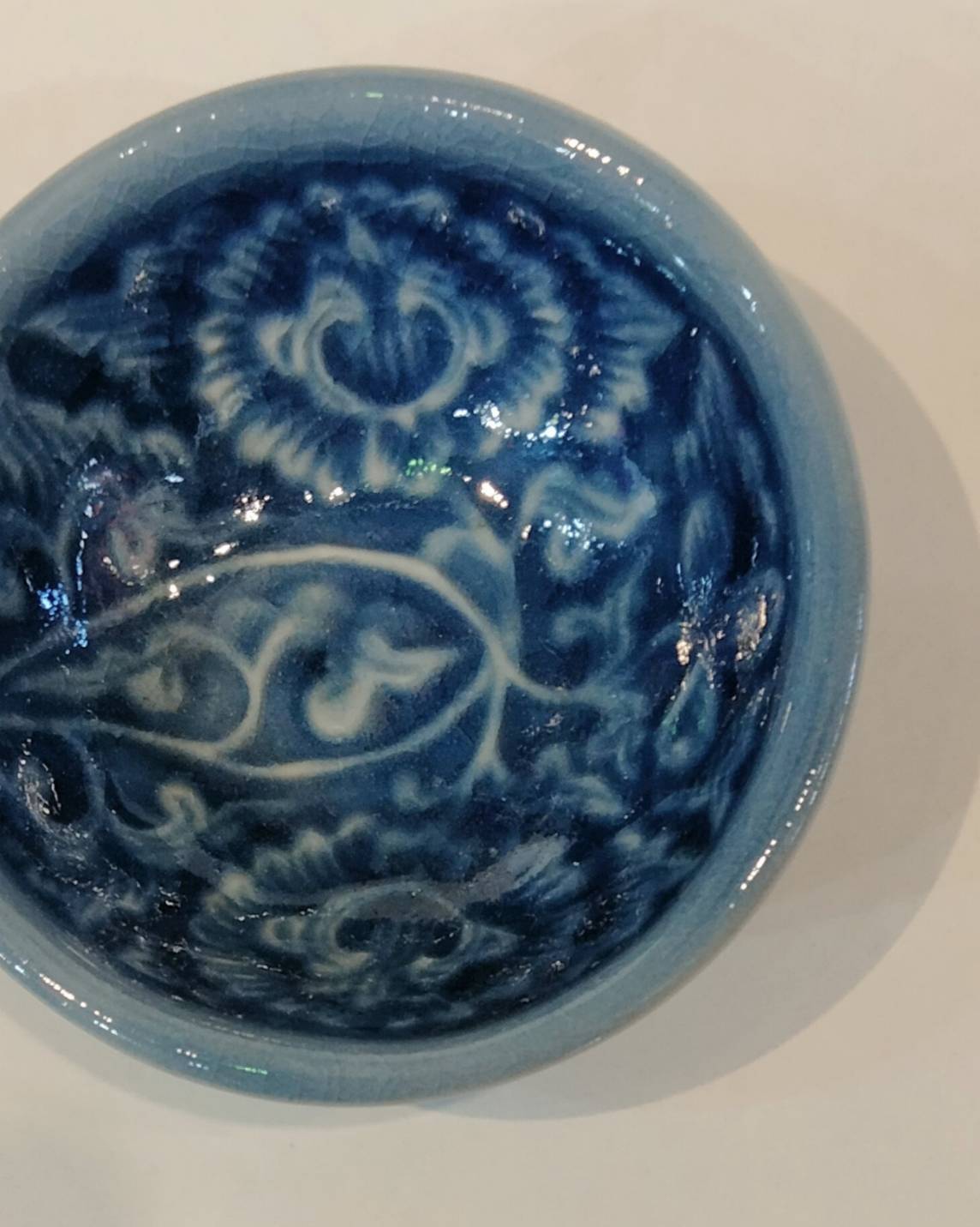 タイ チェンマイ製 セラドン焼き 豆皿【花柄】