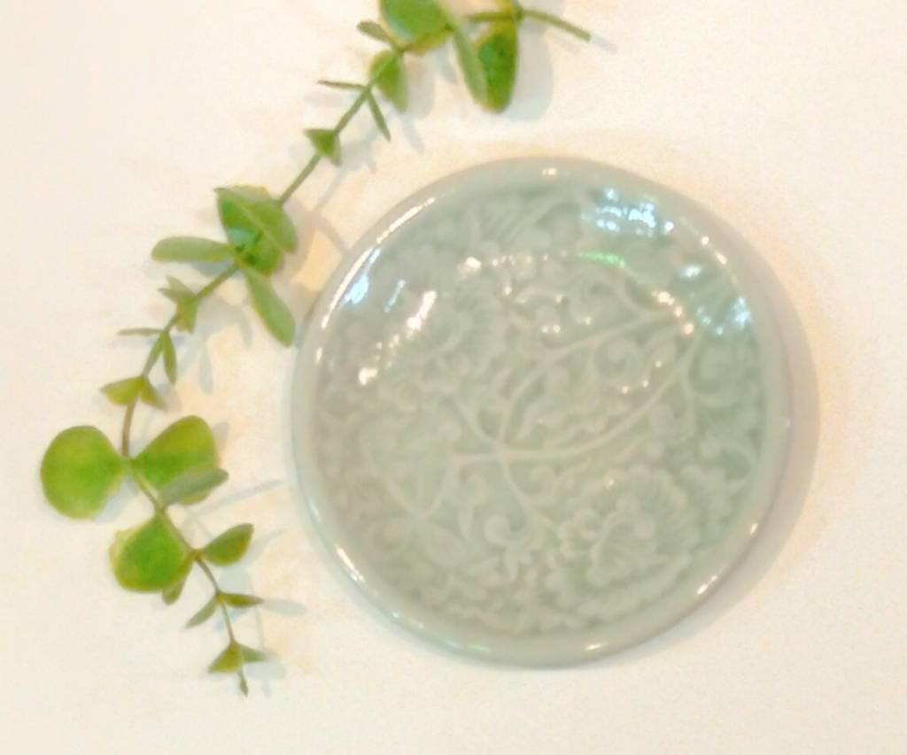 タイ チェンマイ製 セラドン焼き 小皿【花柄】