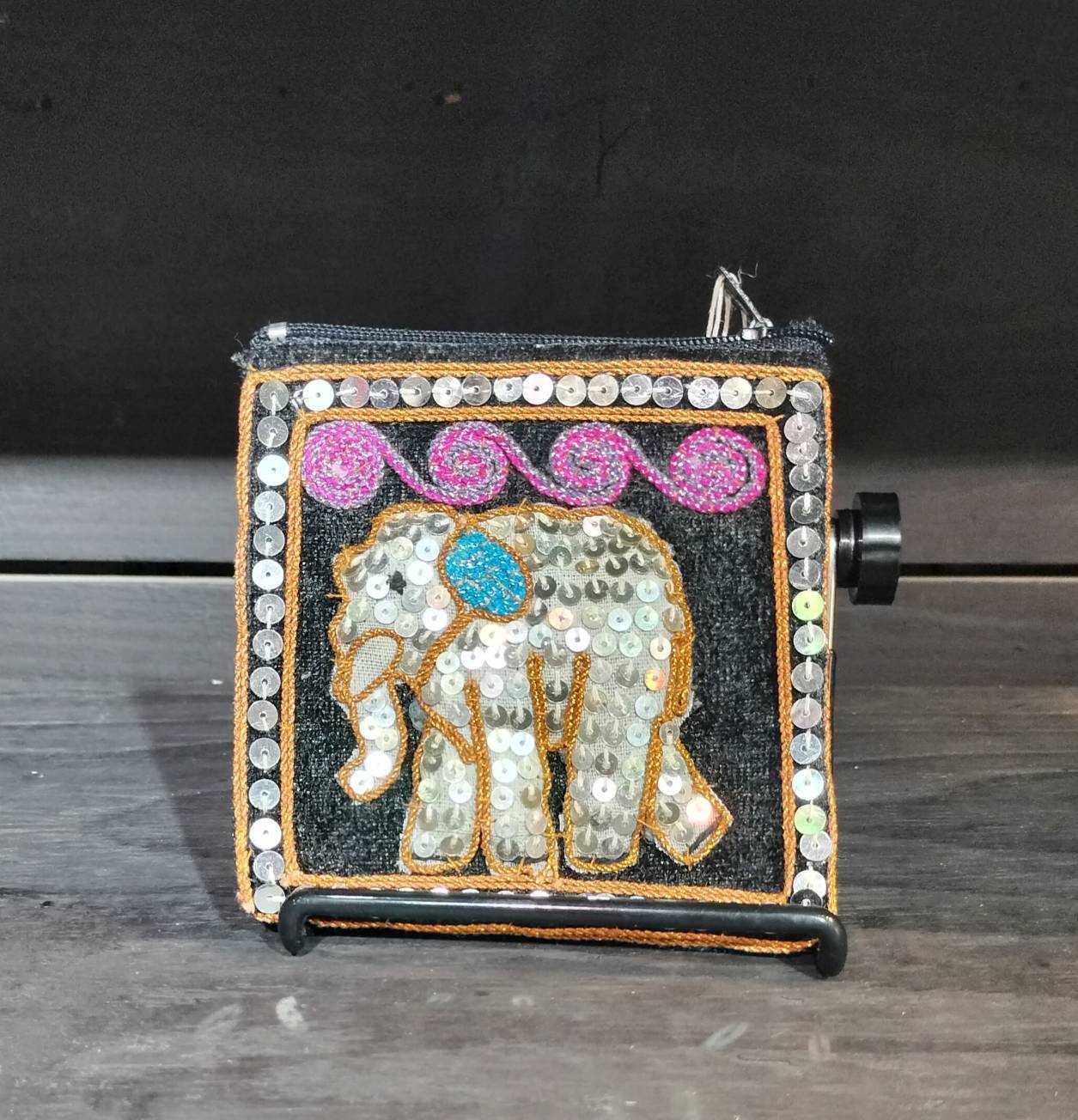 タイ製 ゾウ スパンコールポーチ 1点物 小①