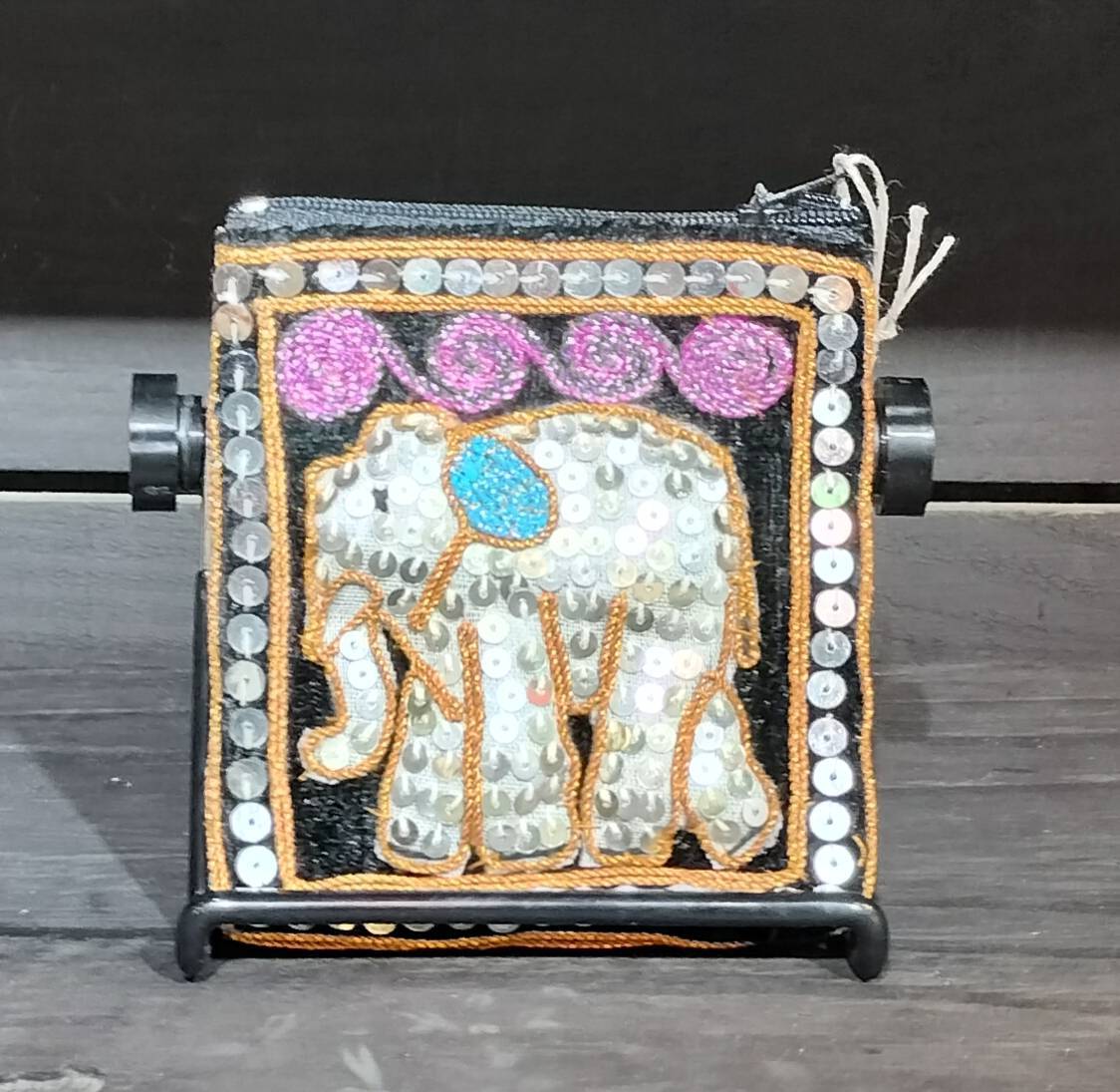タイ製 ゾウ スパンコールポーチ 1点物 小④