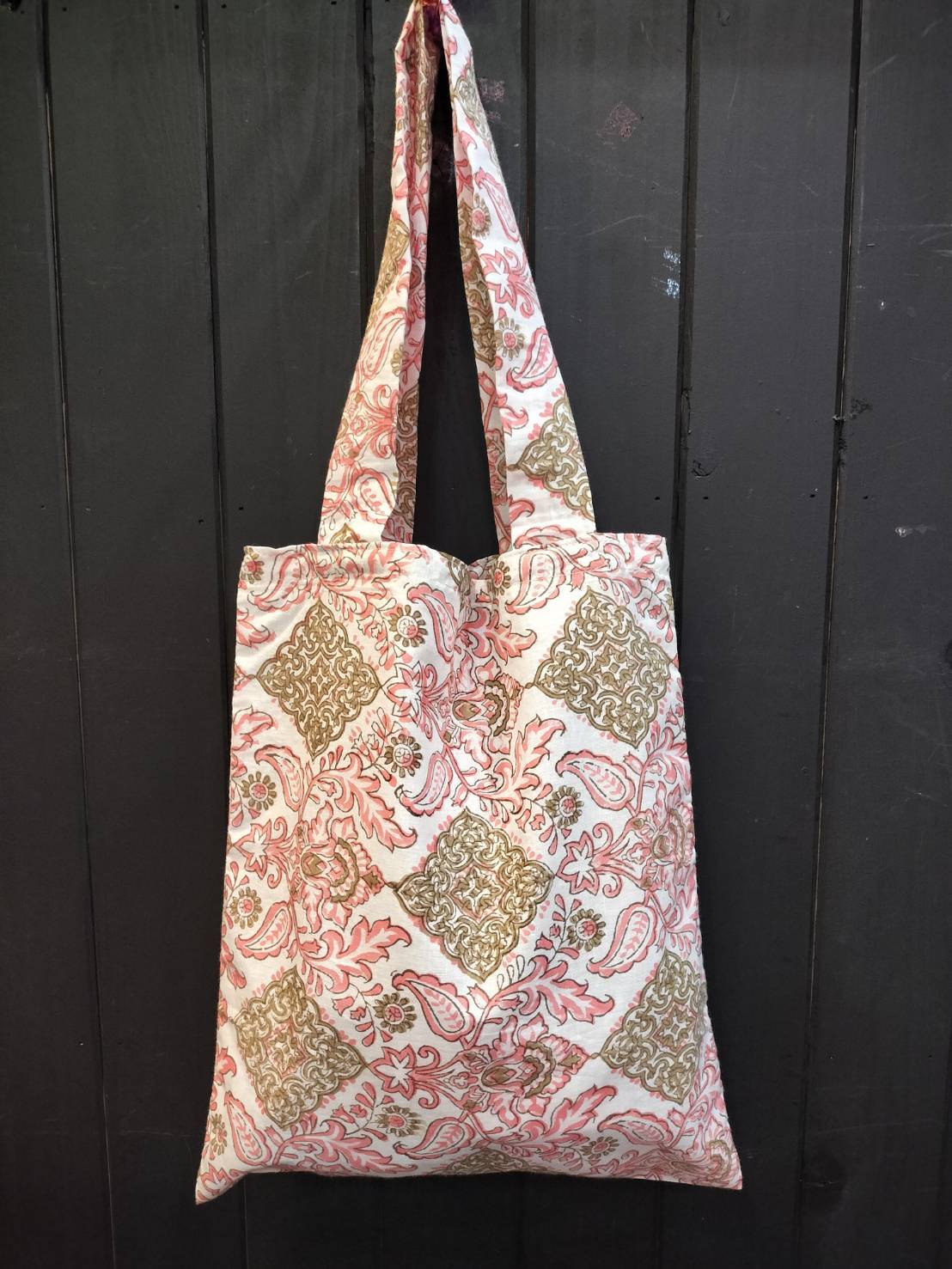 タイで仕入れたブロックプリント生地で、オリジナルトートBAGを作りました!