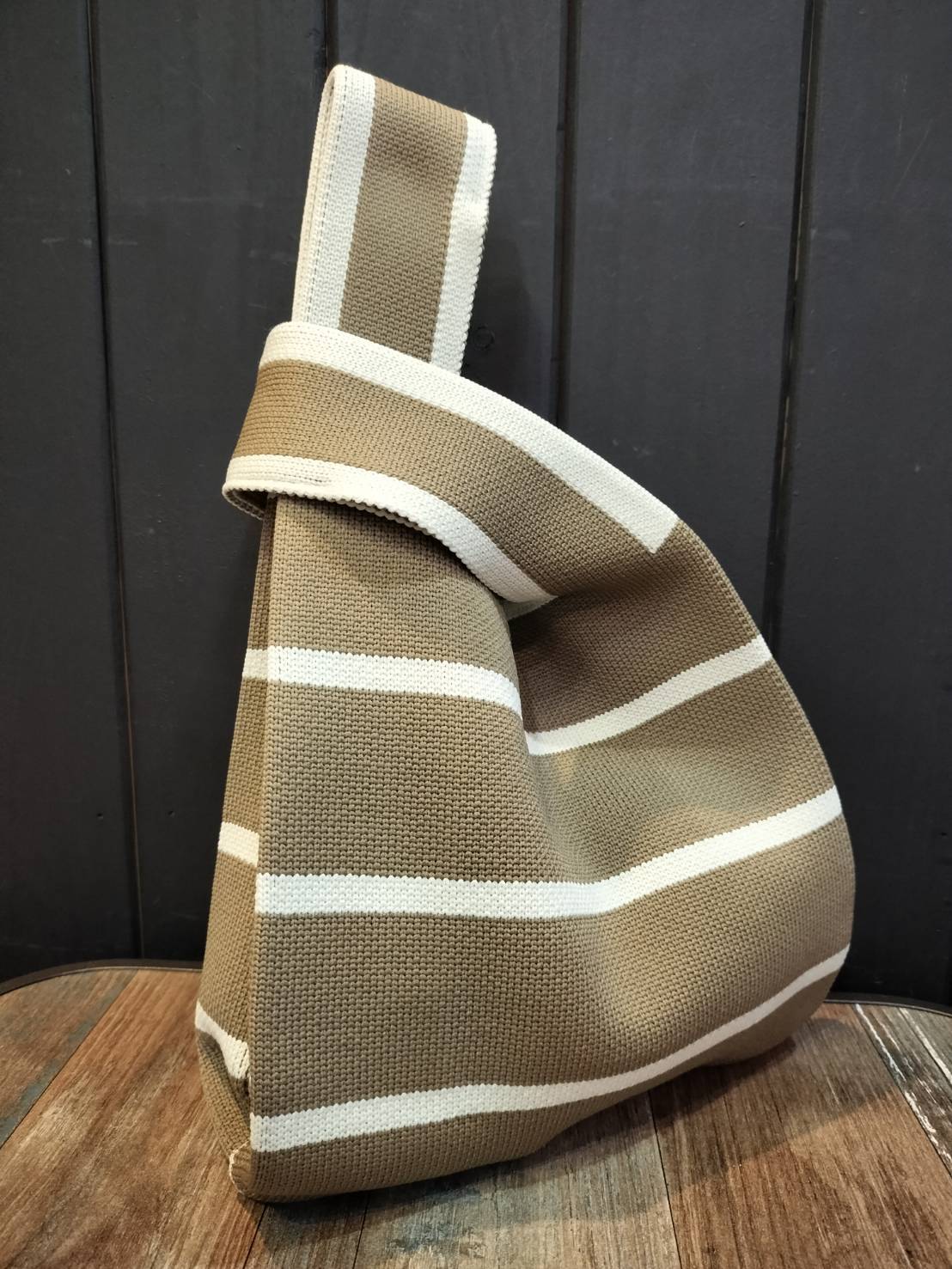 マルシェバッグ ハンドルバッグ ニット生地 ボーダー柄【①】