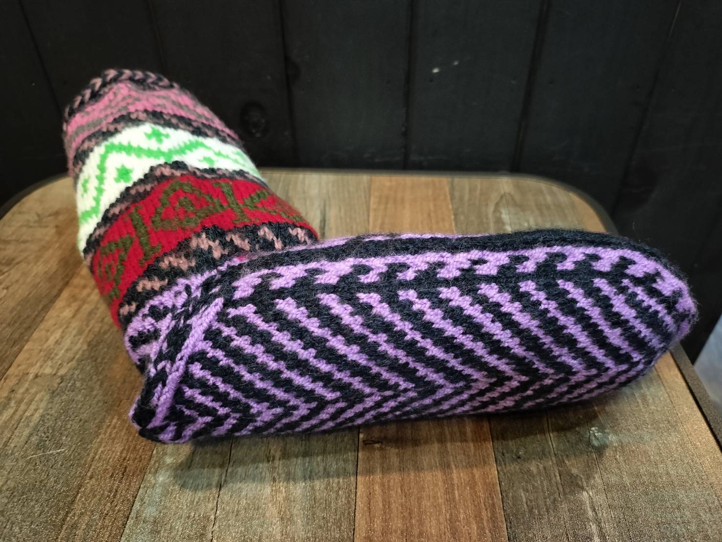 そこで暮らすおばあちゃんたちが手編みでつくった伝統的な靴下は、カラフルでとってもあたたかみがあります。色や柄は作り手によって多種多様。2足と同じデザインが存在しません。
