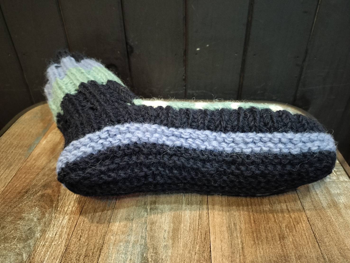 ネパール製 手編みルームソックス(L) ウール100% フリース裏地 【②】