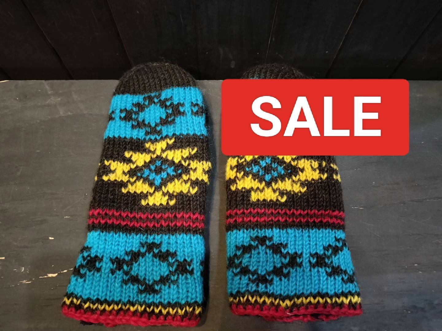 【プライスダウン!】ネパール製 手編み ミトン ブルー ヒマラヤ 【③】