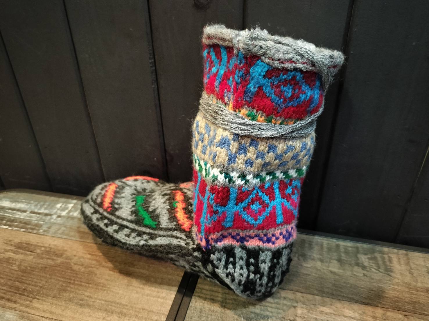 そこで暮らすおばあちゃんたちが手編みでつくった伝統的な靴下は、カラフルでとってもあたたかみがあります。色や柄は作り手によって多種多様。2足と同じデザインが存在しません。