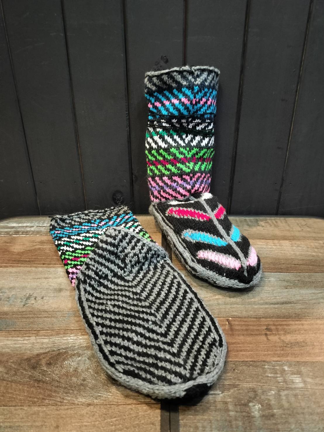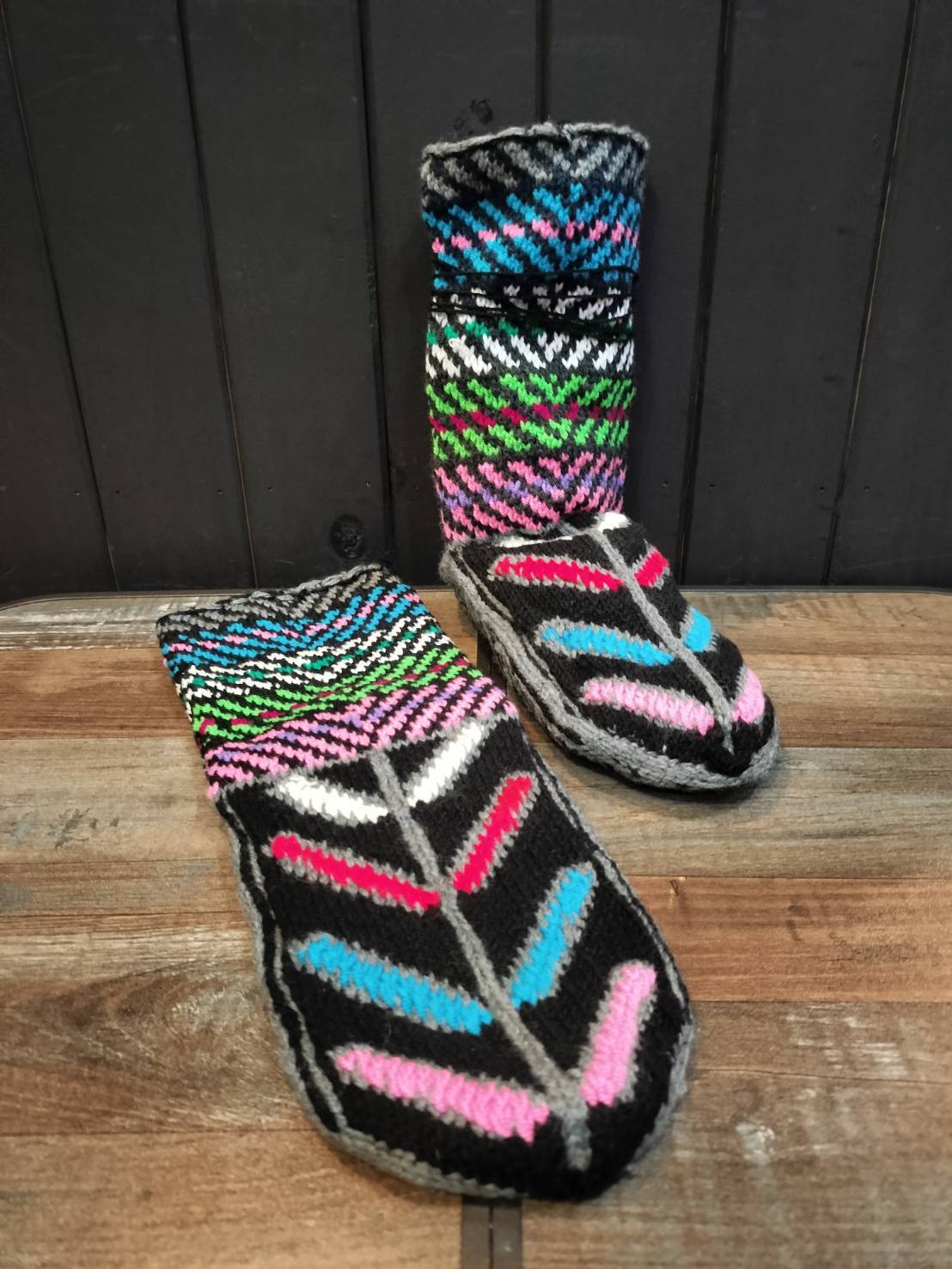 そこで暮らすおばあちゃんたちが手編みでつくった伝統的な靴下は、カラフルでとってもあたたかみがあります。色や柄は作り手によって多種多様。2足と同じデザインが存在しません。