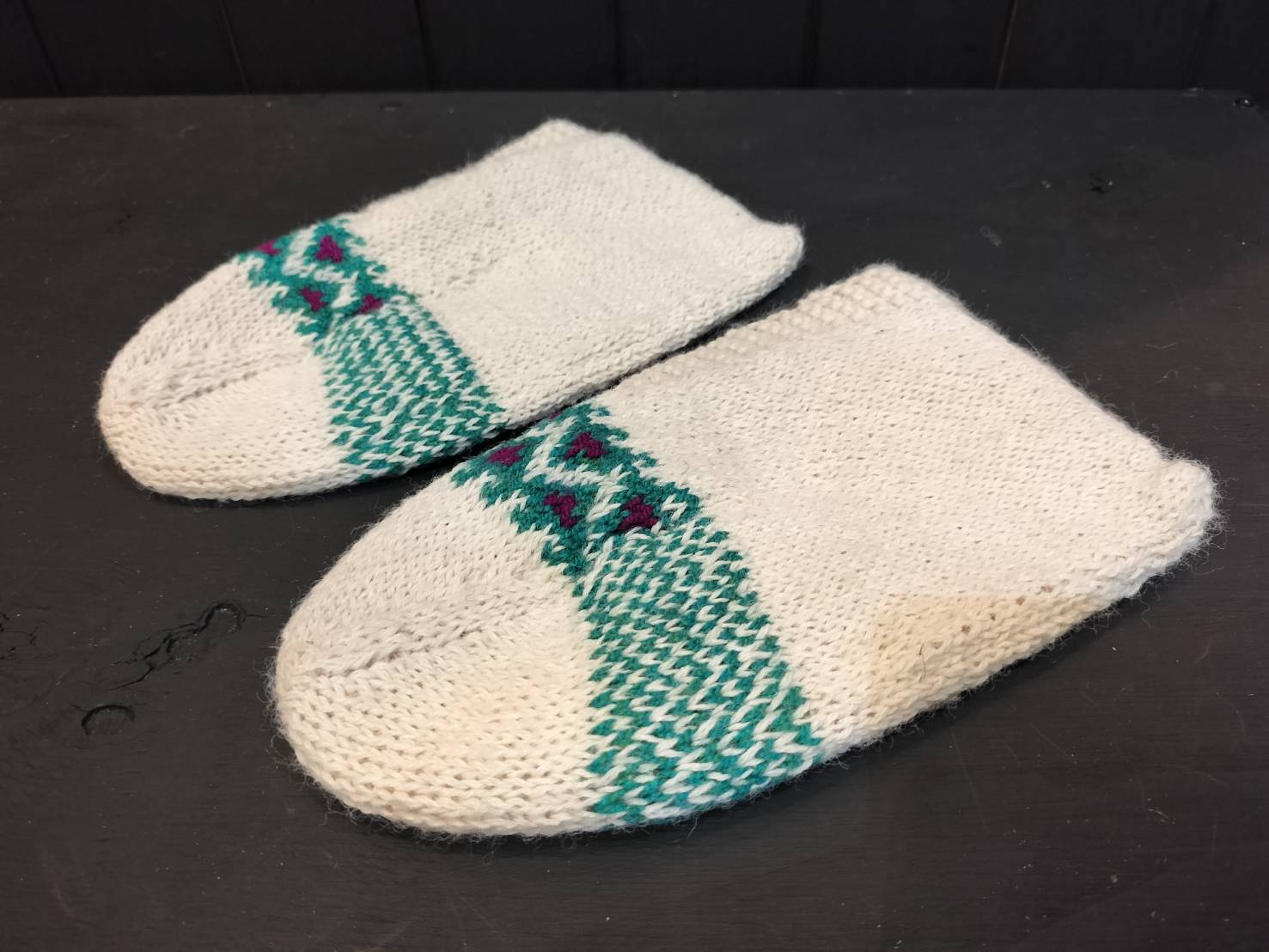 ウール100%で足元寒さ知らず♪ イラン製 手編みルームソックス【⑩】