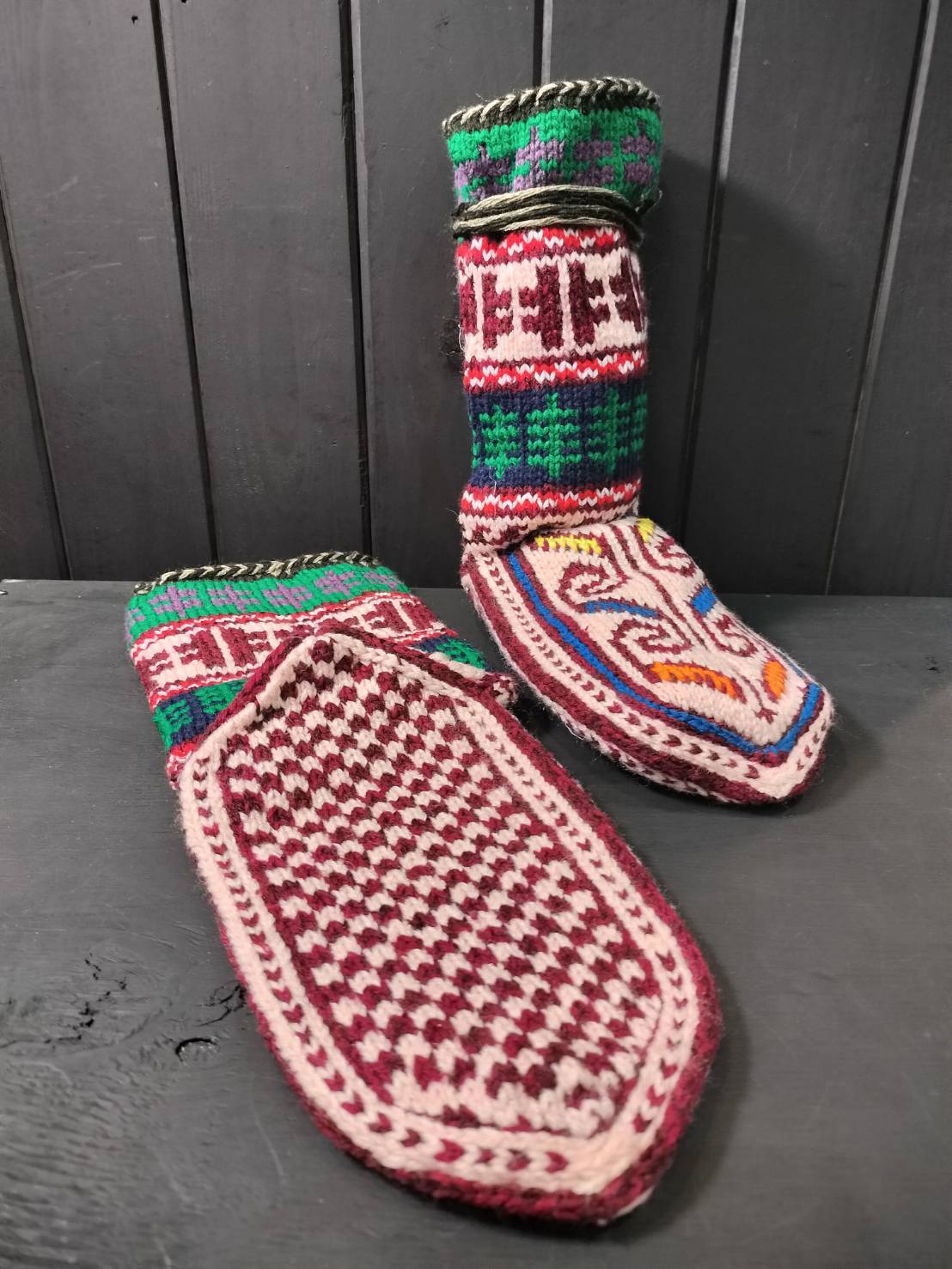 そこで暮らすおばあちゃんたちが手編みでつくった伝統的な靴下は、カラフルでとってもあたたかみがあります。色や柄は作り手によって多種多様。2足と同じデザインが存在しません。