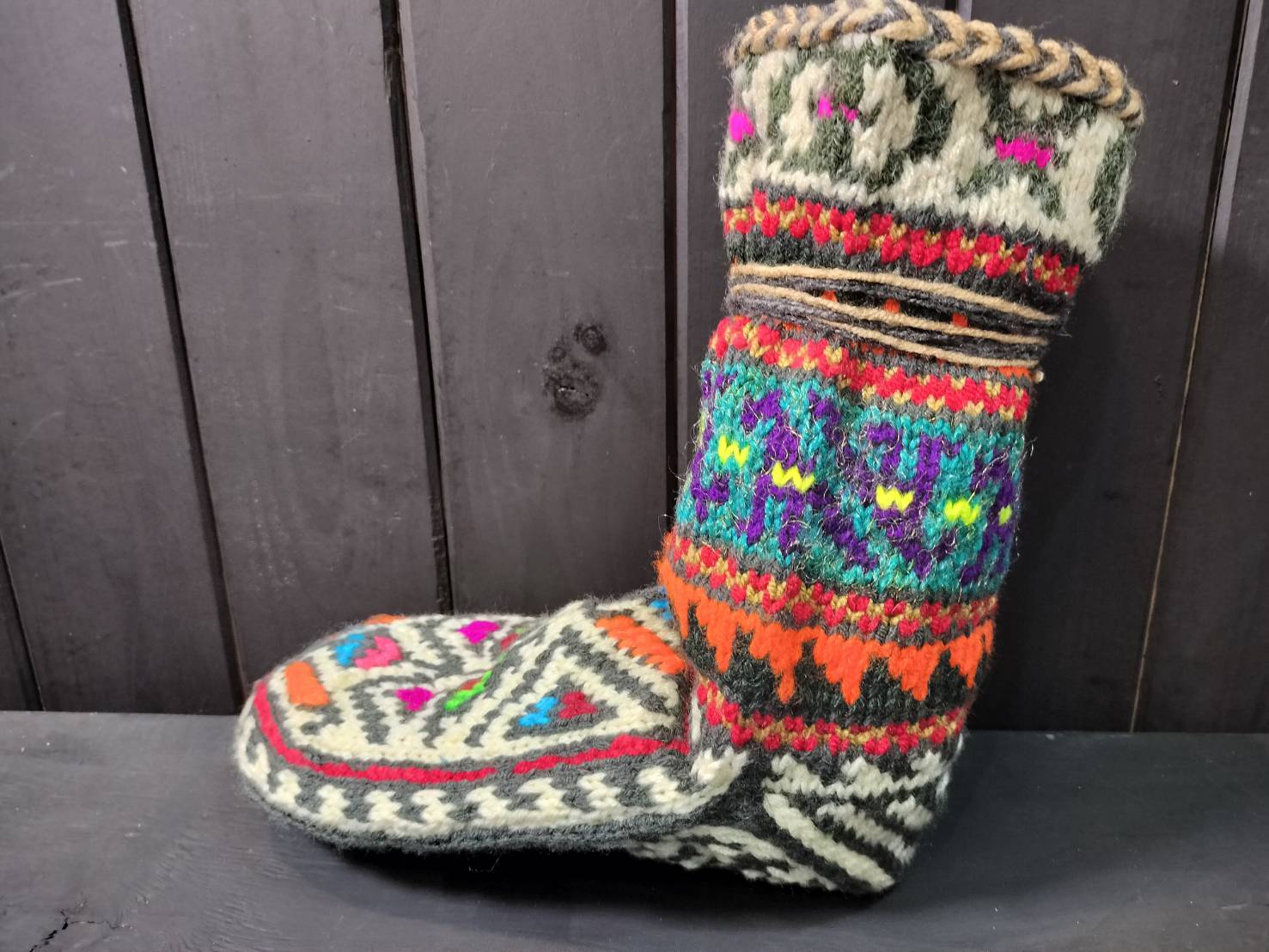 そこで暮らすおばあちゃんたちが手編みでつくった伝統的な靴下は、カラフルでとってもあたたかみがあります。色や柄は作り手によって多種多様。2足と同じデザインが存在しません。