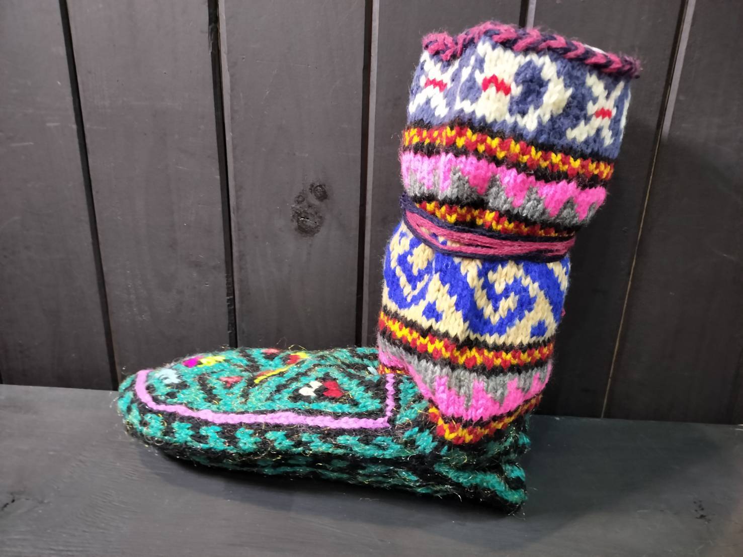 そこで暮らすおばあちゃんたちが手編みでつくった伝統的な靴下は、カラフルでとってもあたたかみがあります。色や柄は作り手によって多種多様。2足と同じデザインが存在しません。