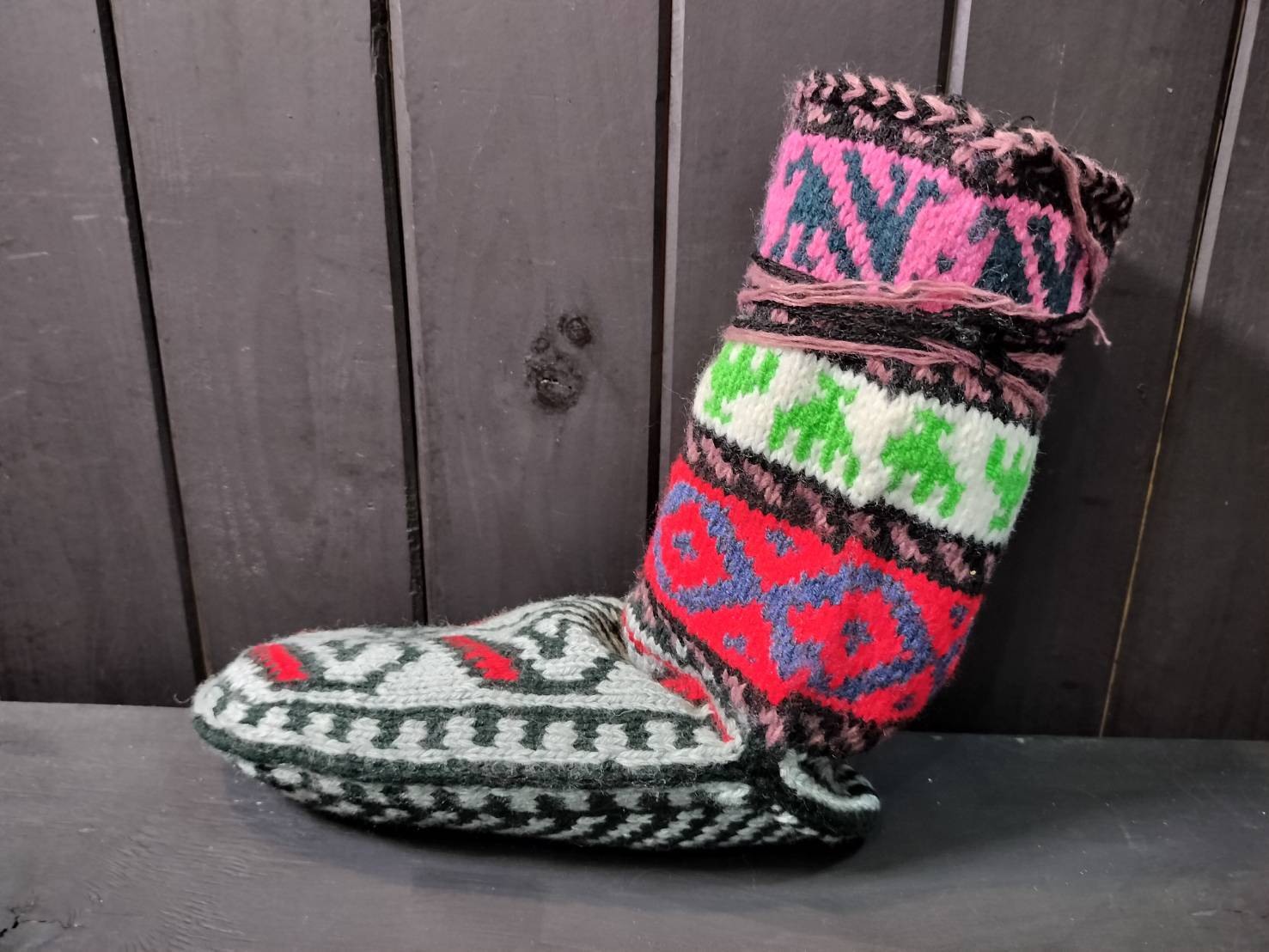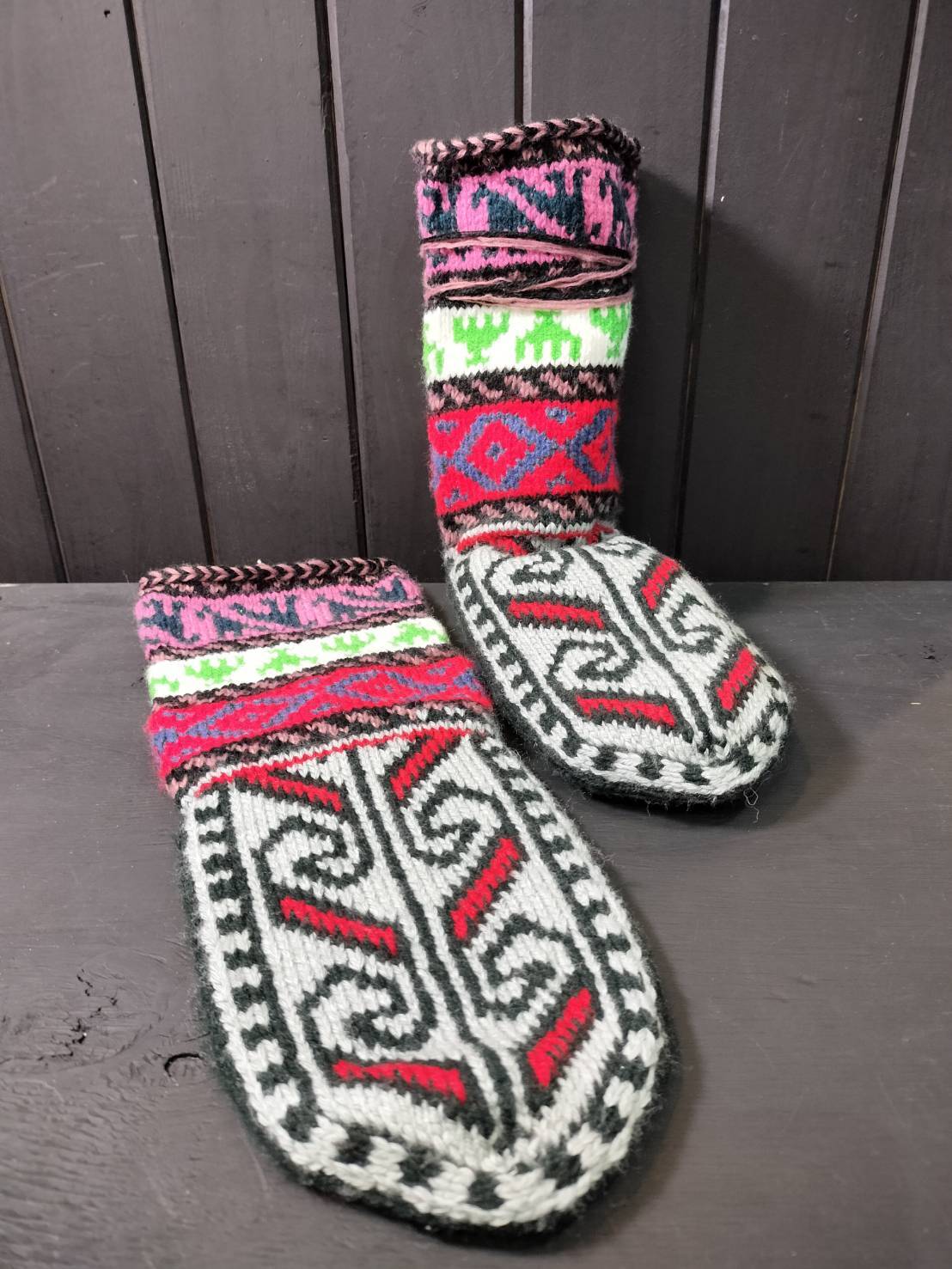 そこで暮らすおばあちゃんたちが手編みでつくった伝統的な靴下は、カラフルでとってもあたたかみがあります。色や柄は作り手によって多種多様。2足と同じデザインが存在しません。