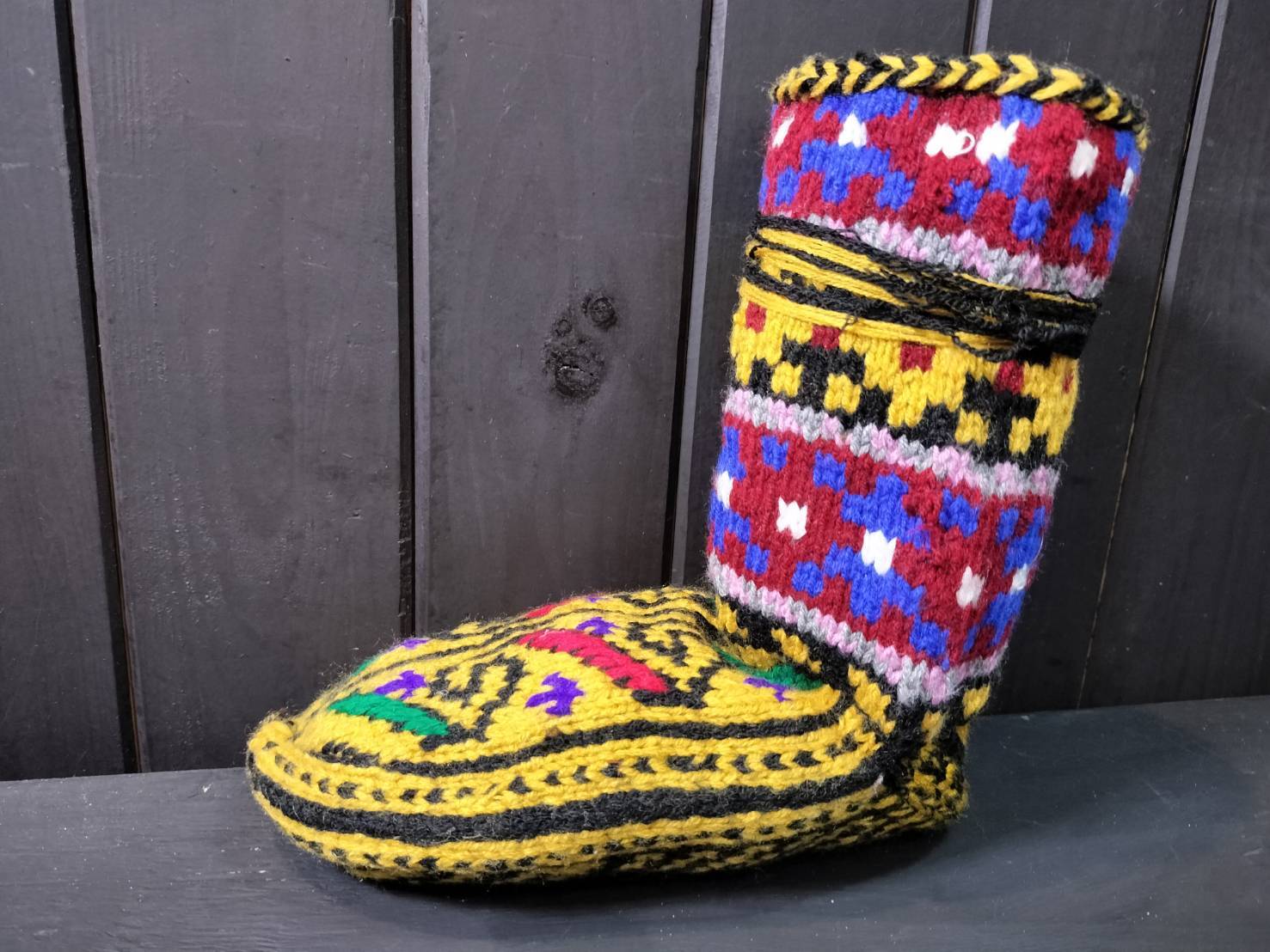 そこで暮らすおばあちゃんたちが手編みでつくった伝統的な靴下は、カラフルでとってもあたたかみがあります。色や柄は作り手によって多種多様。2足と同じデザインが存在しません。