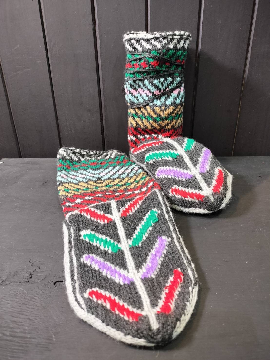そこで暮らすおばあちゃんたちが手編みでつくった伝統的な靴下は、カラフルでとってもあたたかみがあります。色や柄は作り手によって多種多様。2足と同じデザインが存在しません。