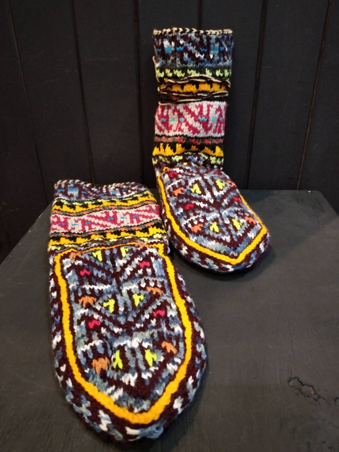 そこで暮らすおばあちゃんたちが手編みでつくった伝統的な靴下は、カラフルでとってもあたたかみがあります。色や柄は作り手によって多種多様。2足と同じデザインが存在しません。