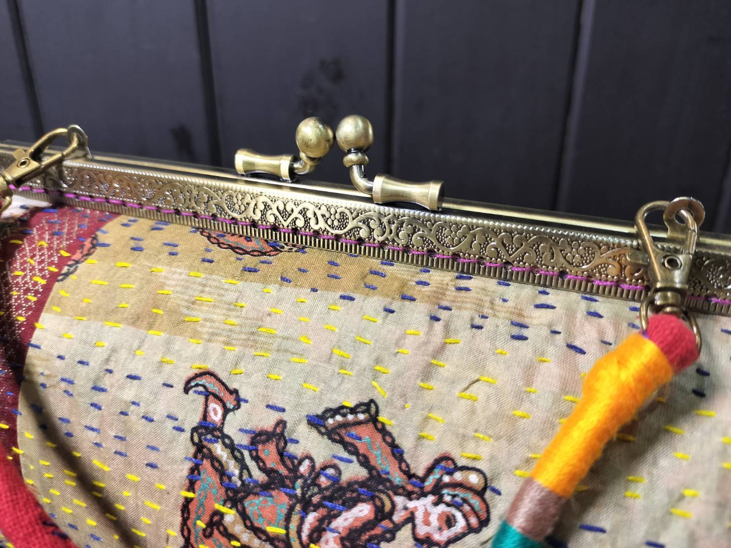 刺し子がま口③ ポーチ クラッチバッグ タイ製 1点物‼ ショルダー有り