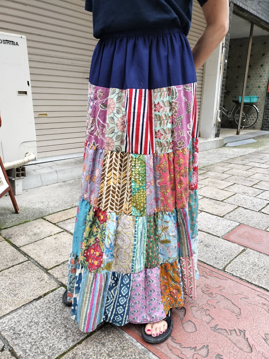 華やかな柄が特徴的なパッチワークスカートが入荷いたしました!