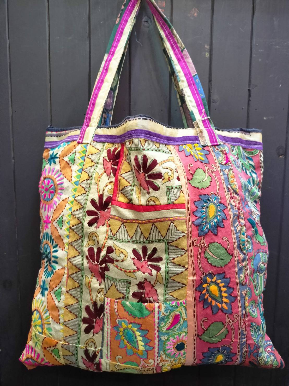 沢山の刺繍布をつなぎ合わせて作られた刺繍トートバッグは、