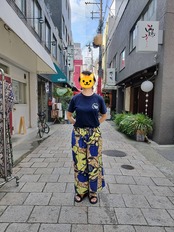 ワイドパンツなのでスカートのように見えますが、