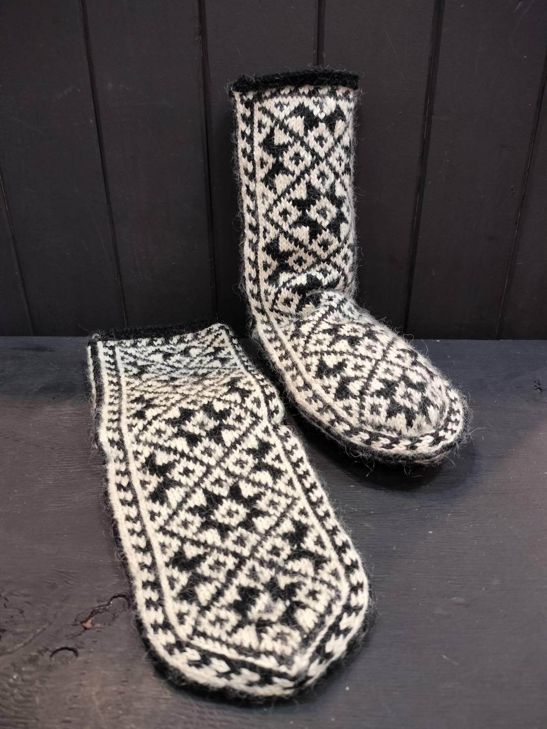 【貴重‼入手困難】イラン製 白×黒 手編みルームソックス アクリル⑭