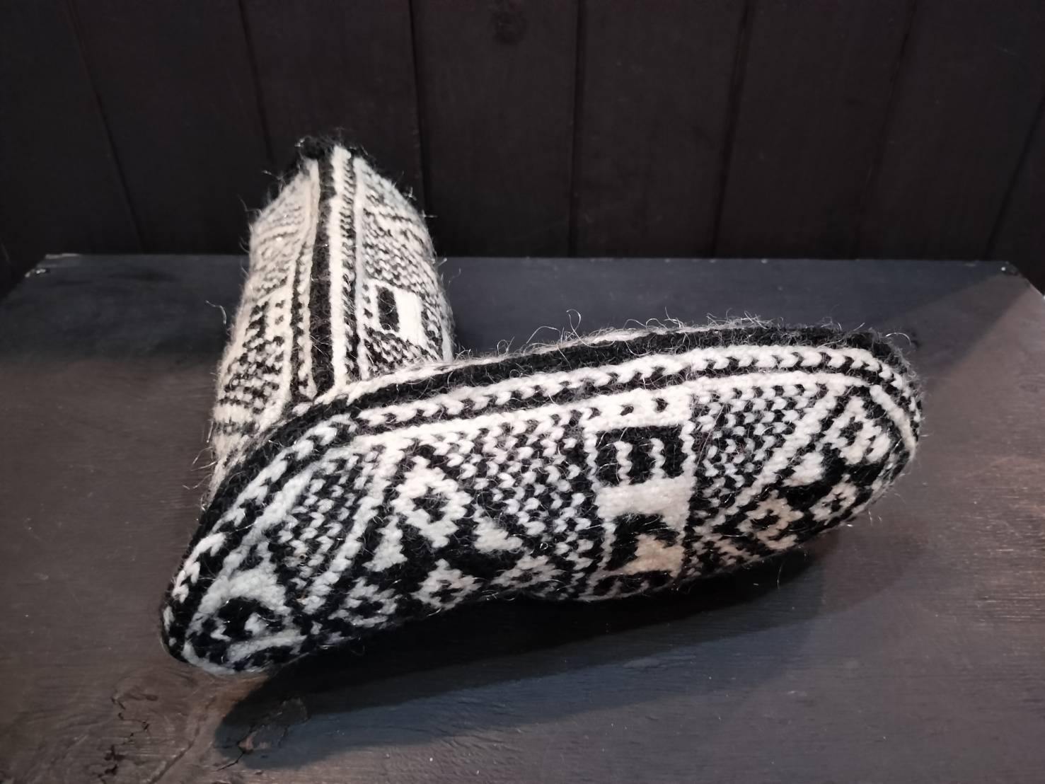 【貴重‼入手困難】イラン製 白×黒 手編みルームソックス アクリル⑯