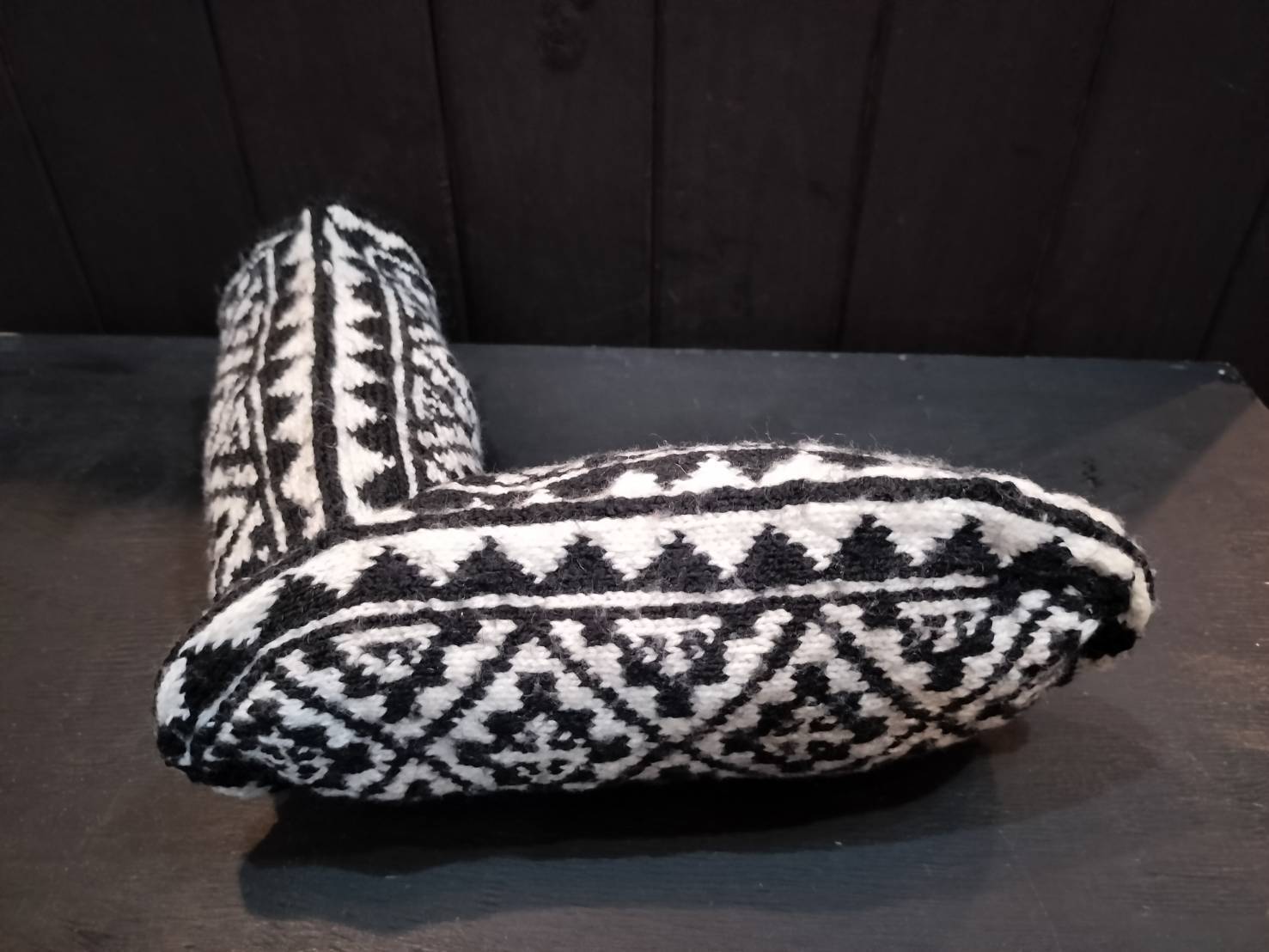 【貴重‼入手困難】イラン製 白×黒 手編みルームソックス アクリル⑰