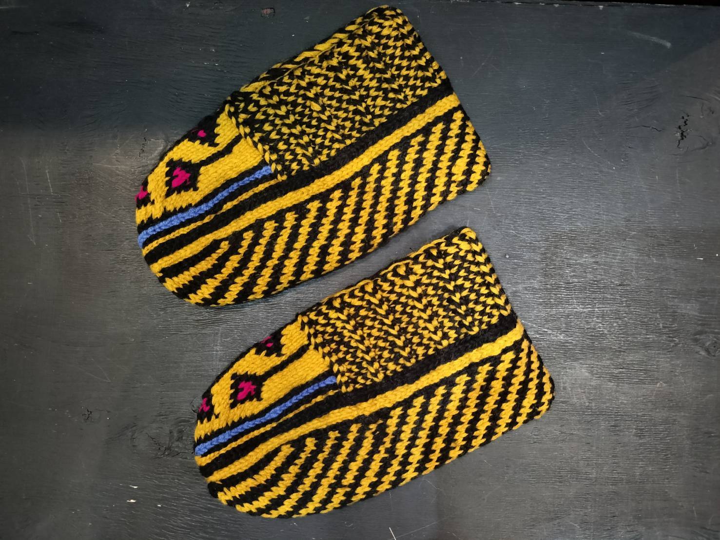 そこで暮らすおばあちゃんたちが手編みでつくった伝統的な靴下は、カラフルでとってもあたたかみがあります。色や柄は作り手によって多種多様。2足と同じデザインが存在しません。